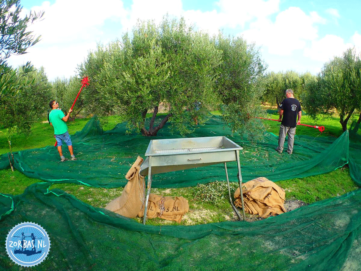 This year there are several fields with trees to harvest. The largest field has 70 trees about 40 years old. New this year is a little field with 6 trees of about 350 years old. These are large, old trees with a lot of olives. All together Zorbas olive oil has 3 fields but we did 6 fields. total number of trees about 200. It is expected that this will result in a top quality oil!